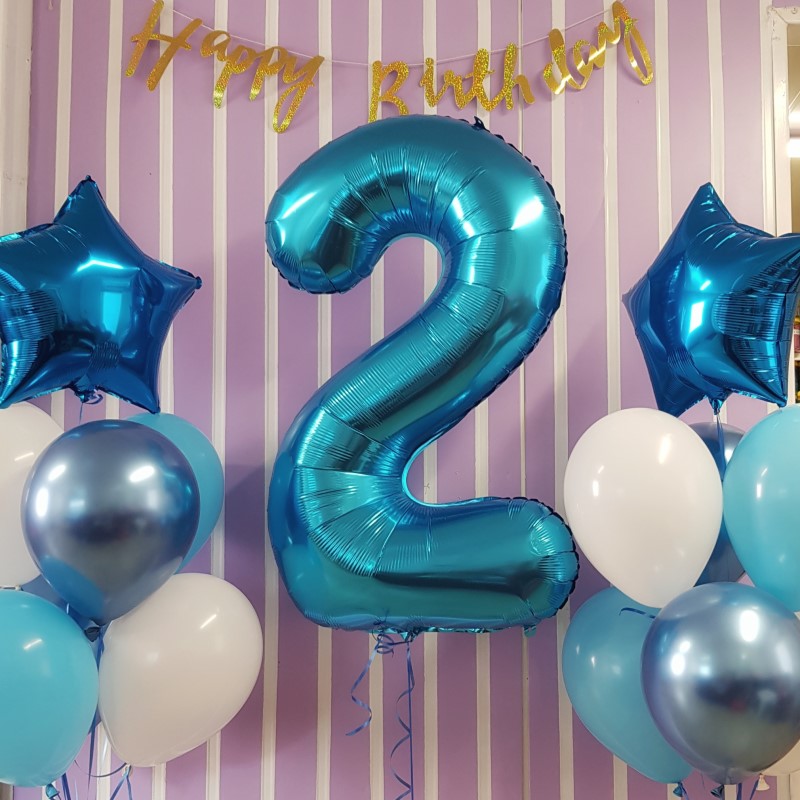 Balon din folie in forma de cifra 2, umflat cu heliu.